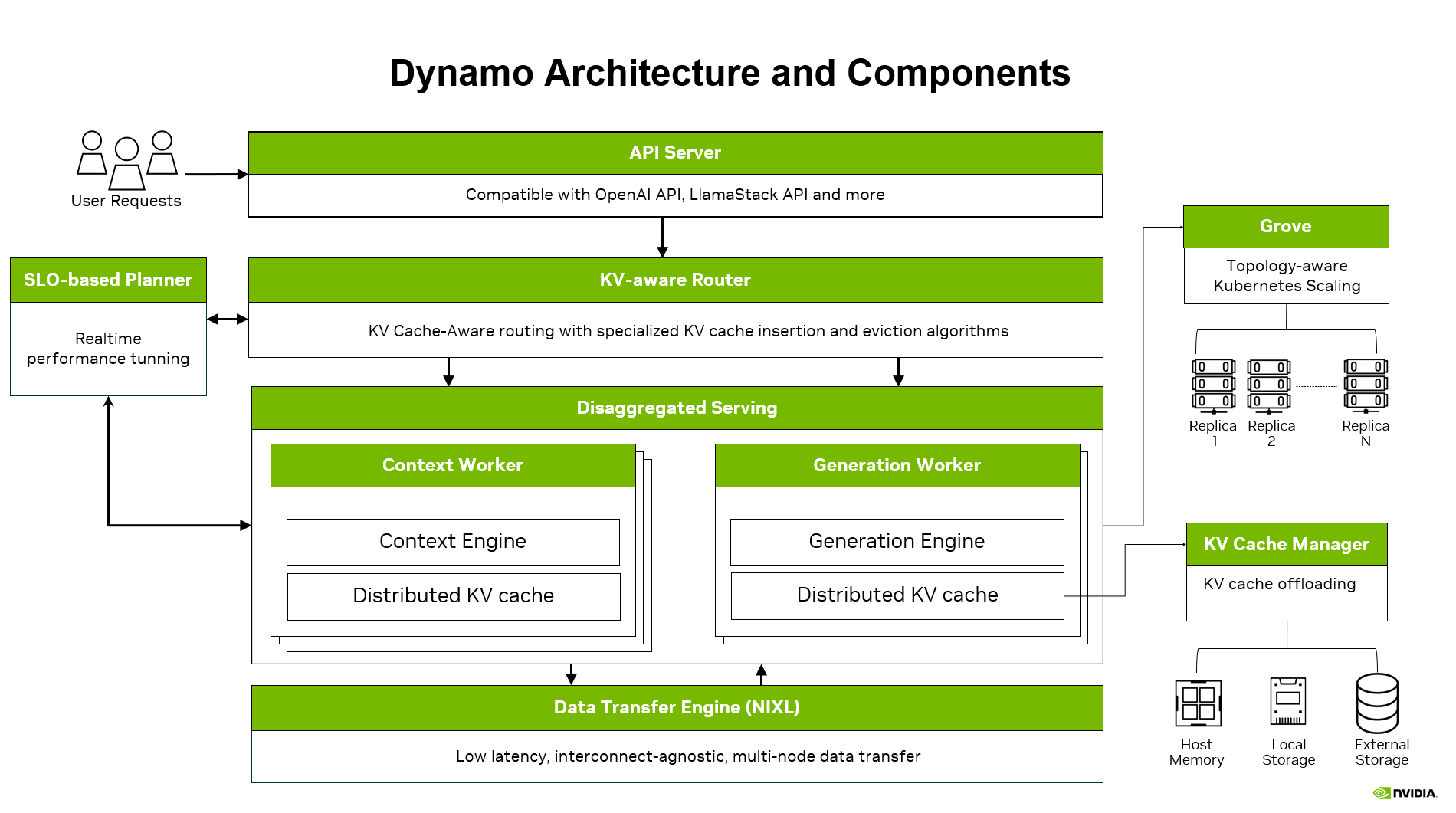 Dynamo is designed for high throughput and low latency production deployments of LLMs. Features such as KV aware routing, KV Block Manager for cache offloading, and Planner for dynamic load matching enable you to hit tighter SLAs while scaling across more GPUs. vLLM and wide-EP serving is natively supported in Dynamo with all of these features. For more details check out Dynamo and the example recipe to replicate the performance in this blog post.